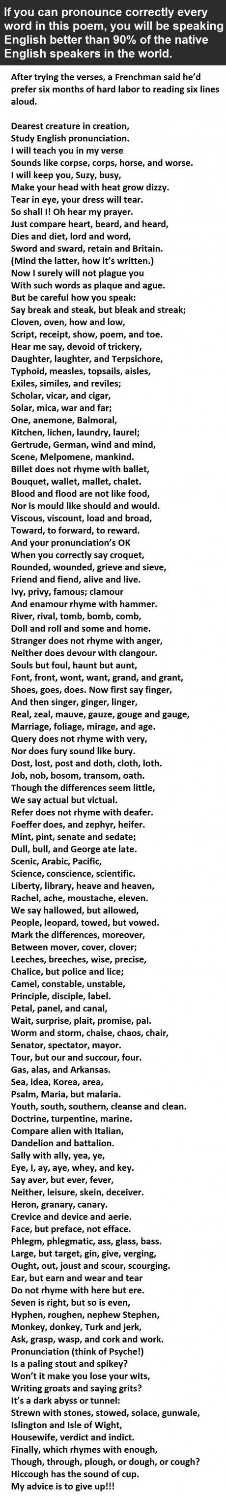This arrived in my inbox this morning from Pintrest and I had great fun reading it to hubby. Read out loud and see how you do! Lemme know how it goes ☺